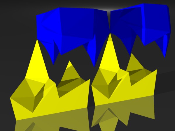 Fully-rendered improved dilambdodont models at the beginning of the occlusal stroke: